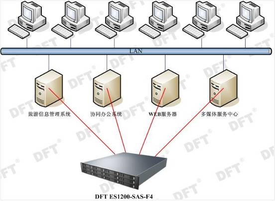 目前北京旅游局有四臺服務(wù)器,分別運行不同的應用,存儲數據的裸容量為6TB,為滿(mǎn)足客戶(hù)高帶寬,高可靠性,高穩定性,高性?xún)r(jià)比的要求,DFT采用了DFT ES1200-SAS-F4這款產(chǎn)品,產(chǎn)品采用全新的FC-SAS架構設計,在同一個(gè)盤(pán)陣中可以實(shí)現SAS和SATA硬盤(pán)混裝,并支持先進(jìn)的RAID6功能,能更好的確保整個(gè)數據的安全性。4Gb FC的主機接口確保服務(wù)器的高性能,保證了持續的高速數據讀寫(xiě)與傳輸,該存儲產(chǎn)品可實(shí)現方便的擴容,充分考慮到旅游局日后的發(fā)展,為旅游局提供了完美的存儲解決方案。